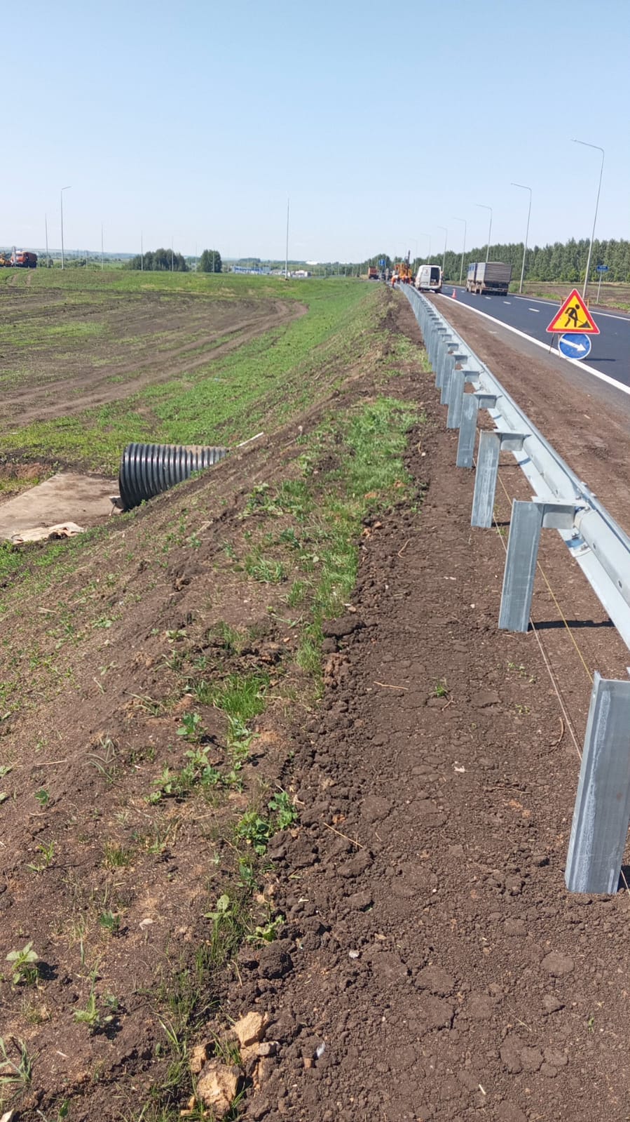 Монтаж гофрированной трубы и барьерного ограждения участке - Дорога М-7, район Мензелинск
